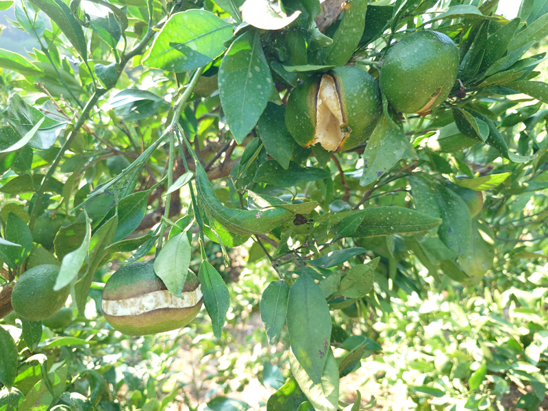 栽培日記 甘平の裂果 栽培日記 2025.09.062025.09.23 愛媛の高級柑橘の1つ”甘平(かんペい)”ただ甘平の栽培は、特に玉が大きくなるこの時期、実の肥大に外皮がついていけず、せっかく育った果実がパックンパックンと縦割れ、横割れと今年も多くの裂果が発生しはじめましたつるや農園の甘平は露地栽培なので水分調整が難しく、思うような栽培ができない生産者泣かせの品種です 甘平の裂果① 甘平の裂果②