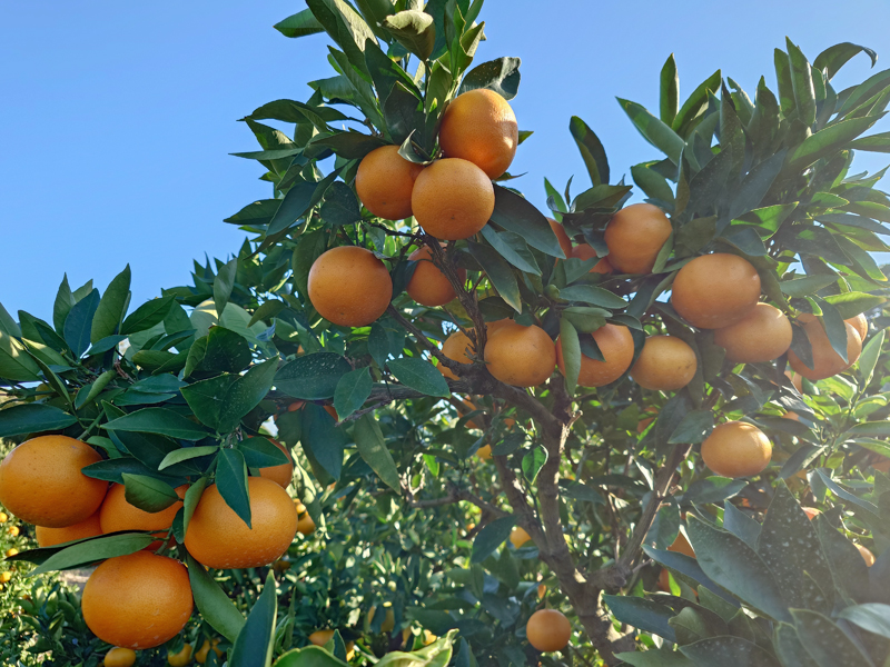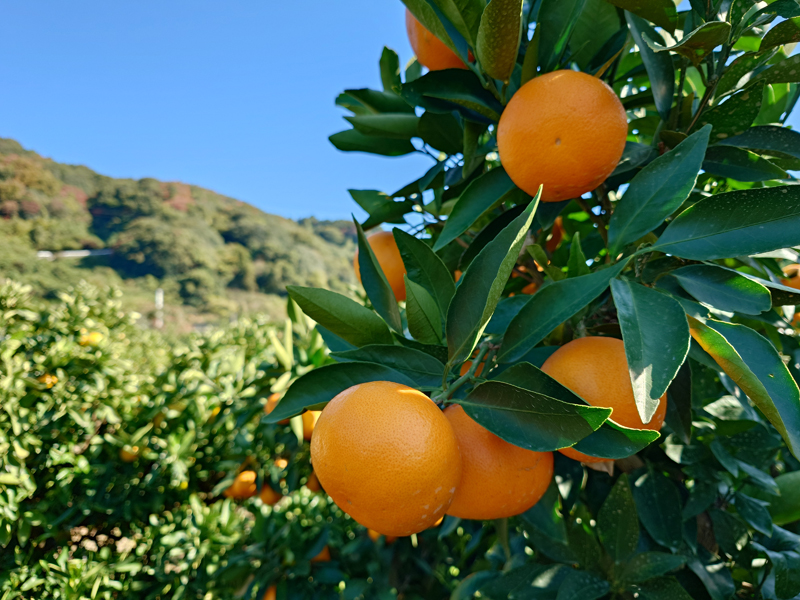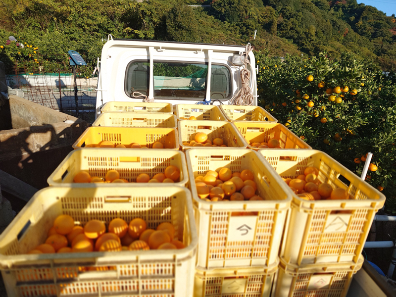 栽培日記 天草の収穫開始 栽培日記 2025.11.302025.12.14 紅まどんなの親の「天草(あまくさ)」酸味が少なく爽やかな甘さで果肉が柔らかく果汁が多いのが特徴の柑橘です約100キャリー分を収穫し、一旦倉庫で保管して年明け1月中旬以降の出荷予定です 天草① 天草② 収穫した天草を倉庫へ運搬