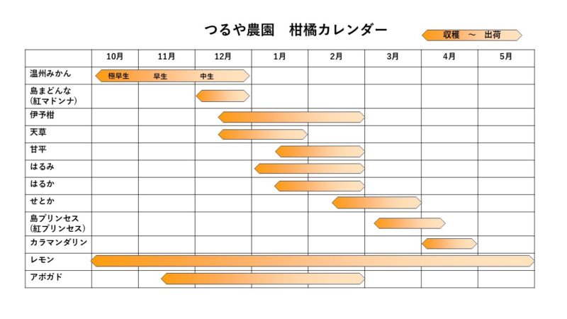 つるや農園では10月上旬から翌年4月末までの期間数多くの柑橘を栽培しています
